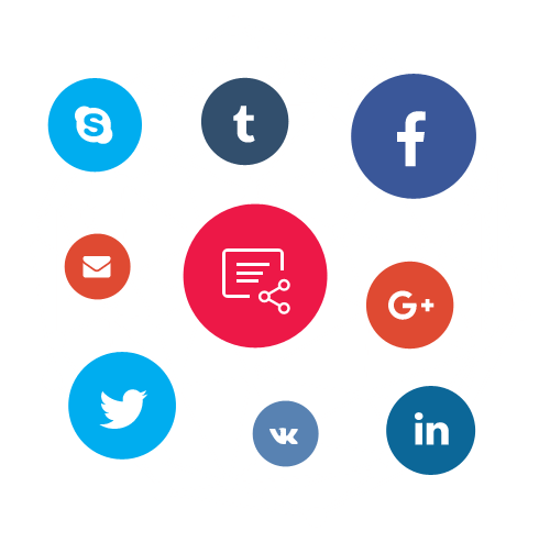 It supports Facebook, LinkedIn, Twitter, Tumblr, Email, Skype, Vk, Whatsapp, Xing, Pinterest, Blogger, Buffer, Reddit, Wikipedia, Copy.